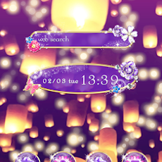 おしゃれなキラキラきせかえ壁紙 紫の夜空と幻想的なランタン